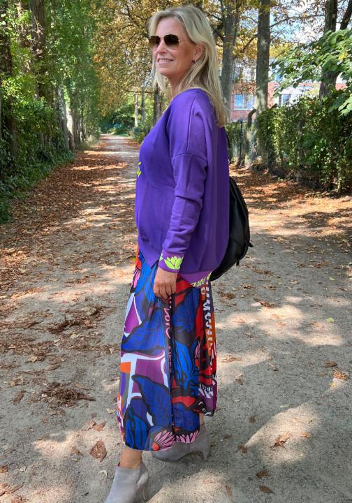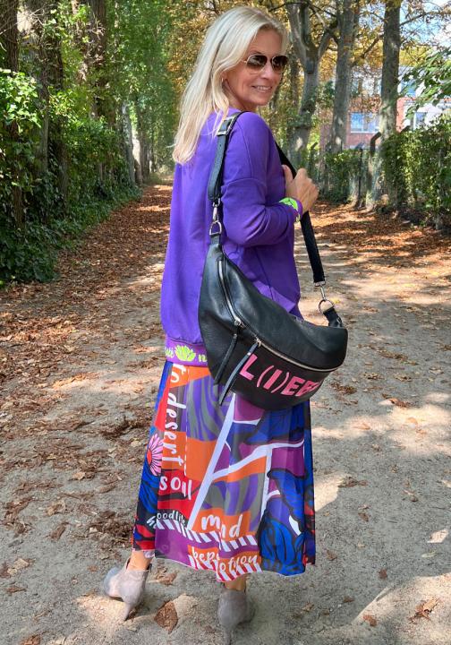 Maxi-Rock aus zartem Chiffon mit farbenfrohem, grafischen Muster. Der elastische Formbund sorgt für einen guten Sitz, der Rock hat zwei Eingrifftaschen.