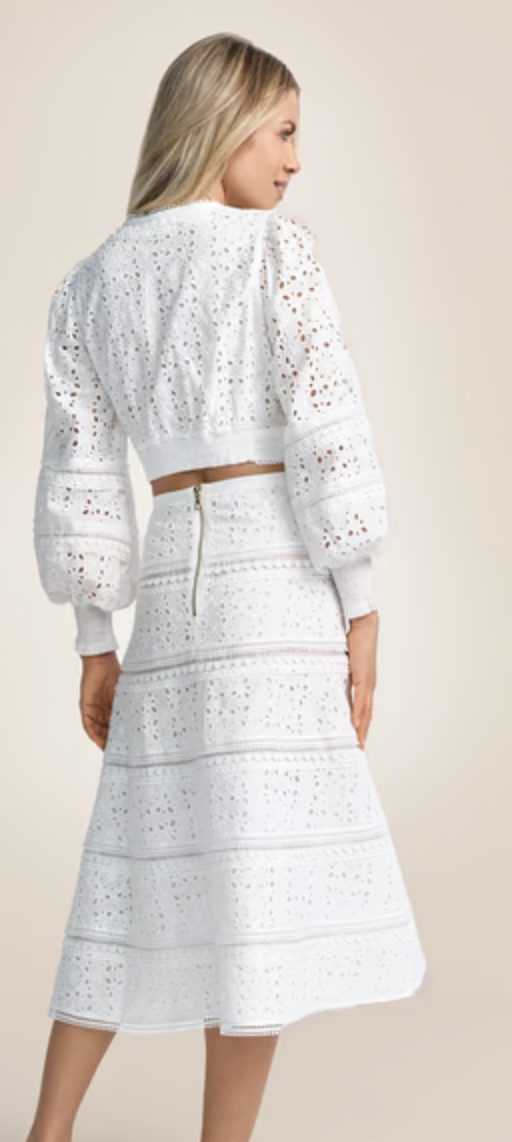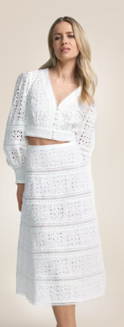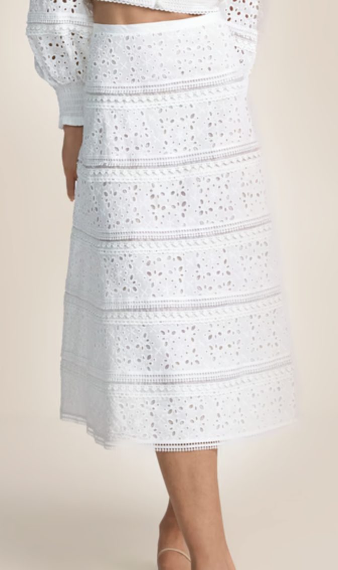 Rock. Knielang. Lochmuster. Bestickt. Ohne Accessoires