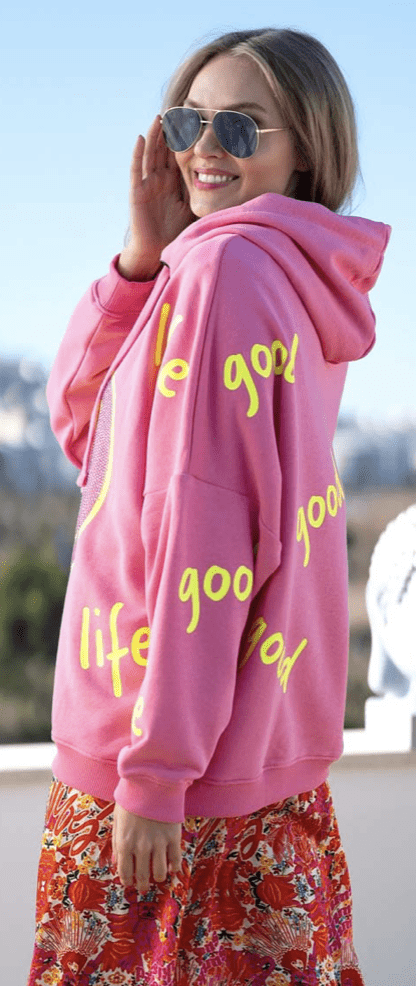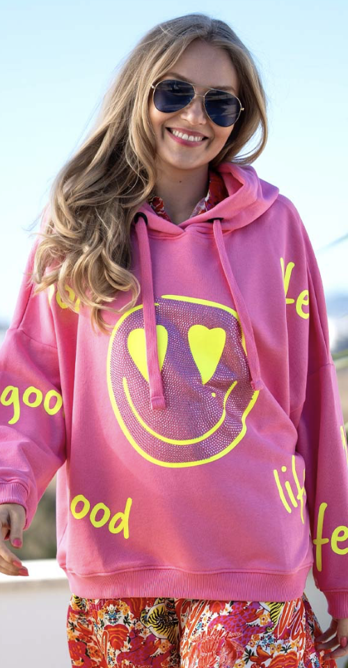 Hoodie Goodlife Heartface Strass – rose/neonyellow