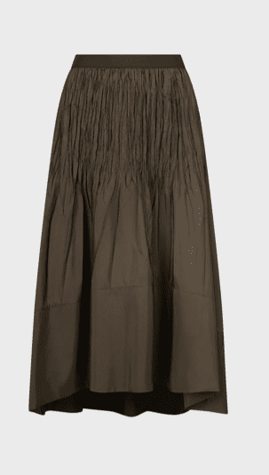 Asymmetrischer Nylonrock mit hohem Bund am Saum und elastischem Bund. Sehr edel mit einen tollen Sweater zu stylen.