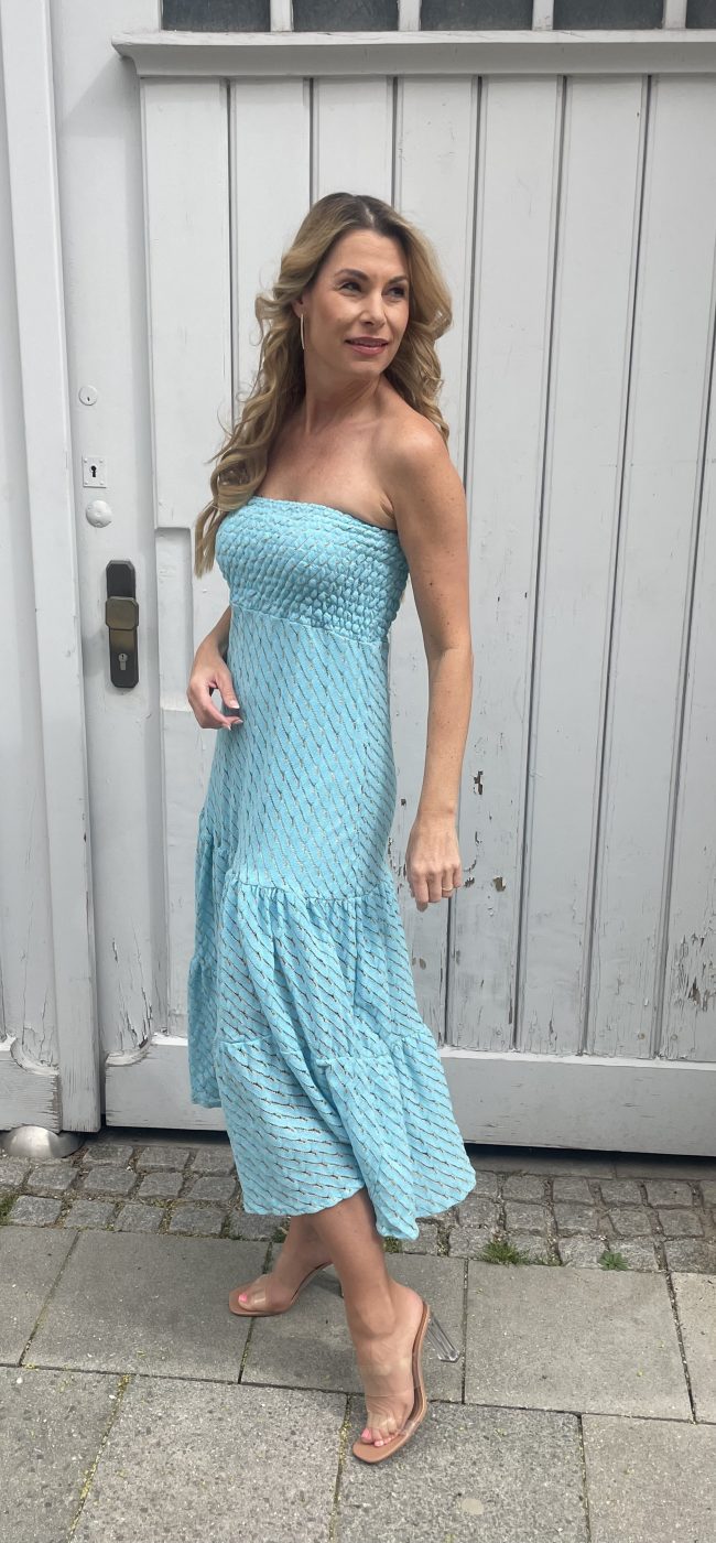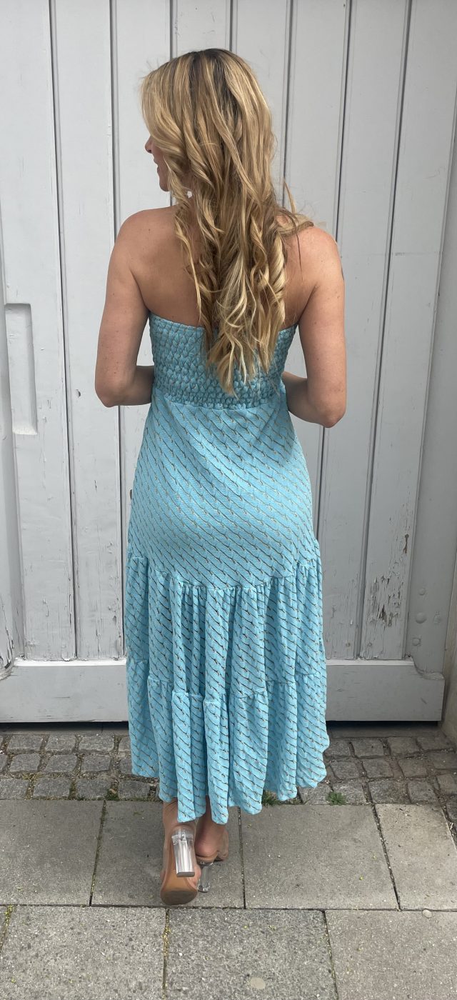 Wunderschönes schulterfreies langes Kleid im tollen Print mit Goldfäden.