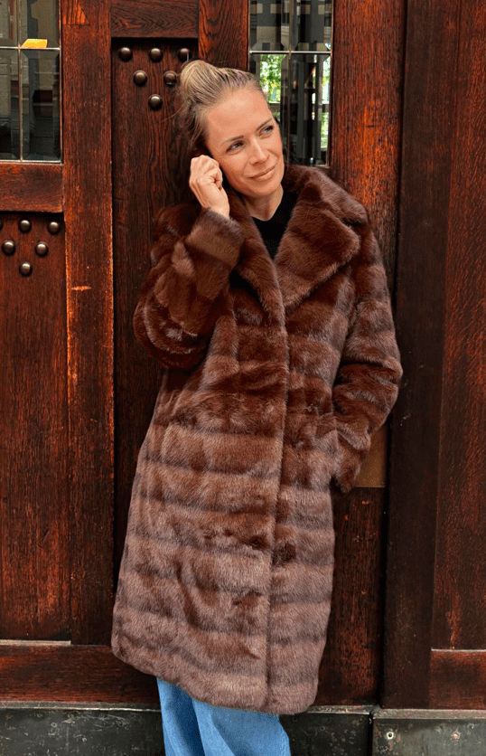 Der lange Webpelzmantel aus mollig weichem Faux Fur begeistert mit seinem Kuschelcharakter.