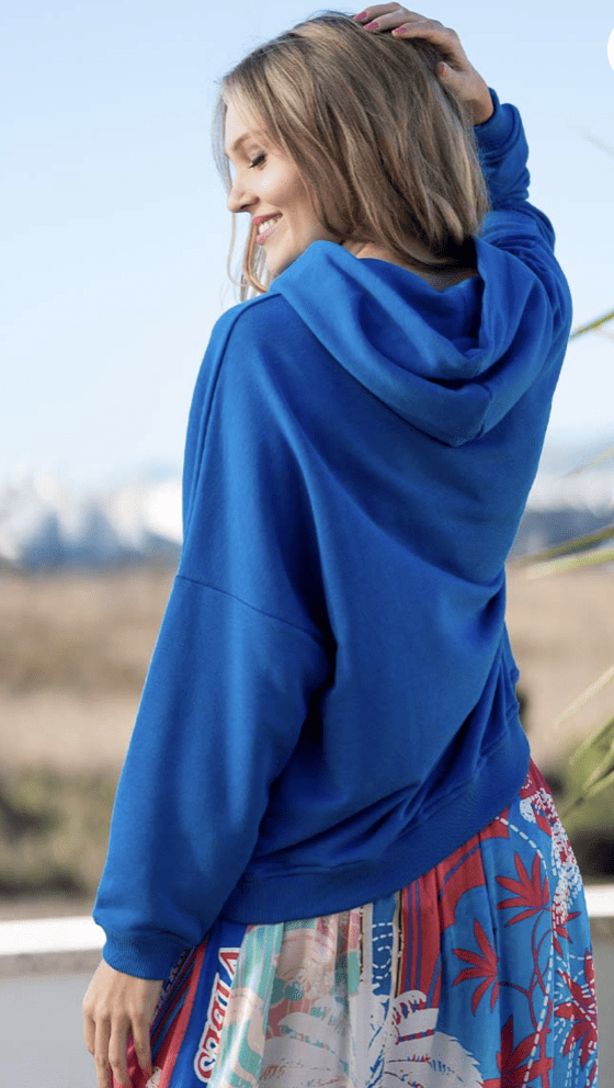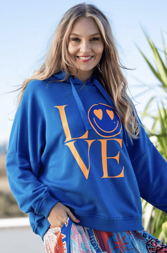 Hoodie Love Heartface – blue/neonorange