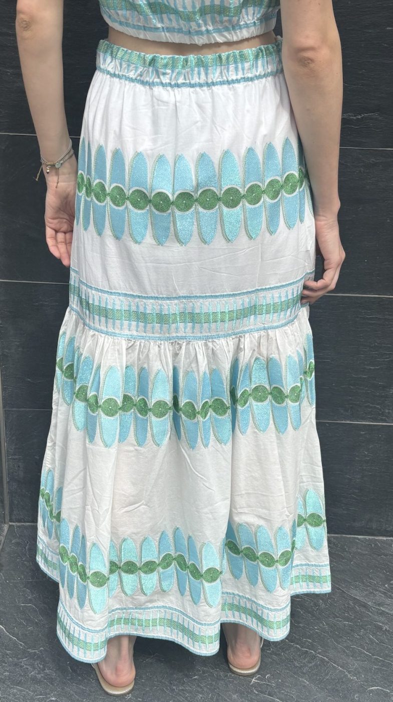 Traumhafter wunderschöner Rock in weiss – Türkise – dazu gibt es passend ein wundervolles Top.