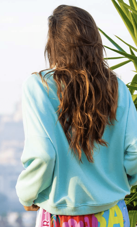 Roundneck Ibiza Palm Sweater – light blue neonorange
