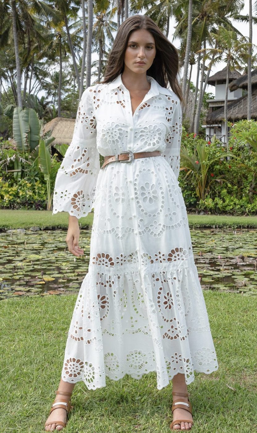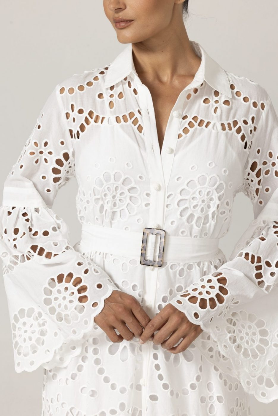 Das vollständig aus hochwertiger Baumwolle gefertigte Ruby-Kleid hebt mit seiner wunderschönen Lochstickerei das handwerkliche Können hervor. Dieser edle Stoff verleiht dem Kleid seine einzigartige Textur und sein raffiniertes Erscheinungsbild. Jedes Detail wurde sorgfältig ausgearbeitet, um ein luxuriöses und zeitloses Ergebnis zu erzielen. Die ausgewählten Materialien gewährleisten eine tadellose Passform über die Jahreszeiten hinweg und bieten gleichzeitig ein weiches und angenehmes Gefühl auf der Haut. Ein absolutes Must-Have für anspruchsvolle Frauen, die auf der Suche nach Kleidungsstücken sind, die zugleich elegant und authentisch sind.