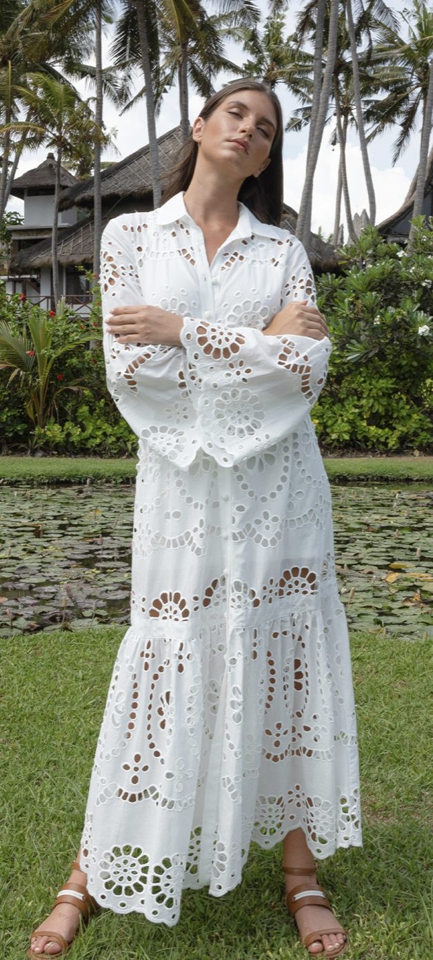 Maxi-Kleid Ruby: Bohème-Chic Eleganz in Englischer Stickerei
